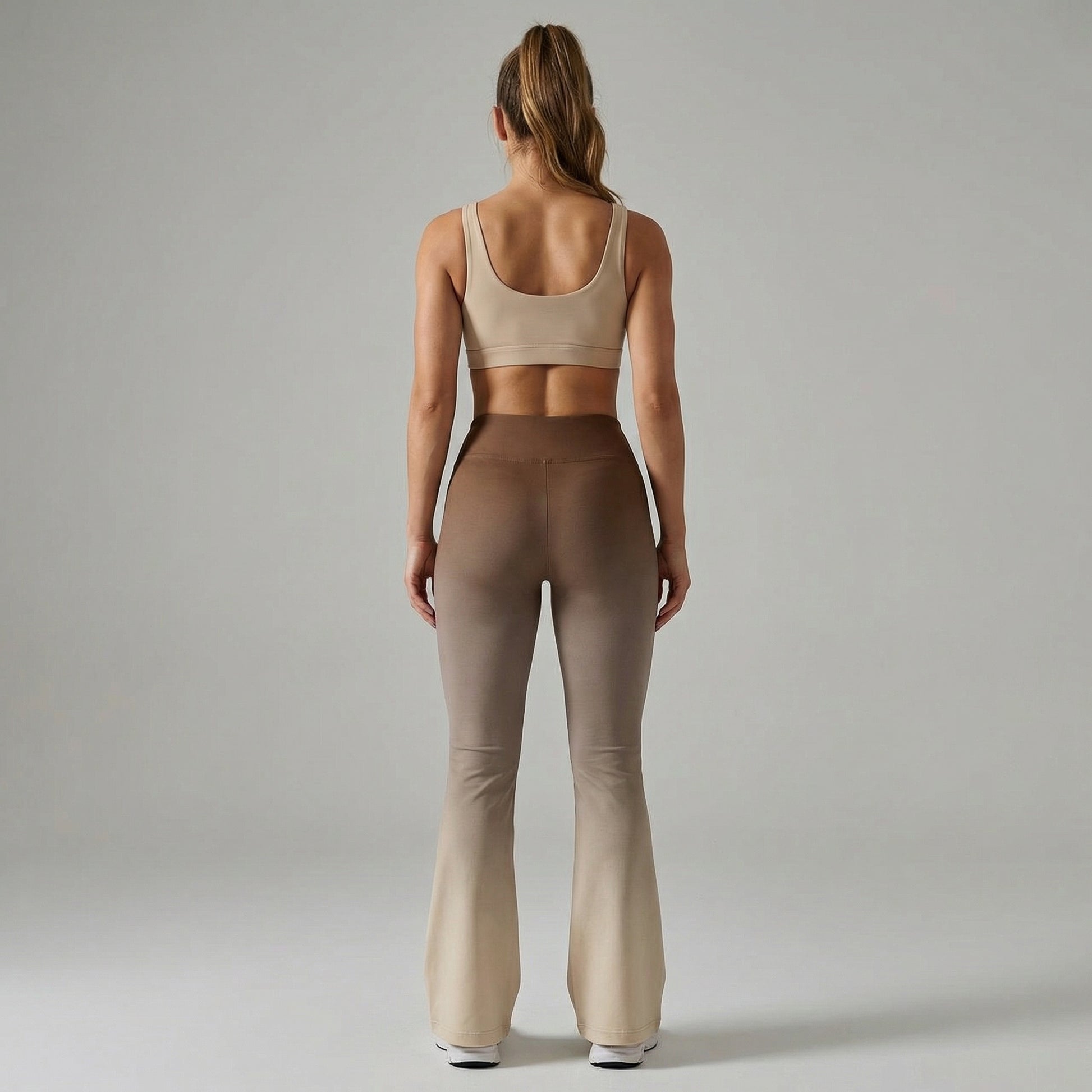Su cintura alta proporciona un ajuste firme y cómodo que moldea el abdomen sin oprimir, mientras que el corte bootcut crea un efecto visual de piernas más largas y una figura equilibrada. El acabado degradado aporta un toque sofisticado y moderno, perfecto para transitar del entrenamiento al street style sin esfuerzo.
